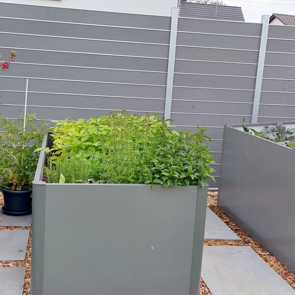 Holz (heim. Lärche), Stahl oder WPC....